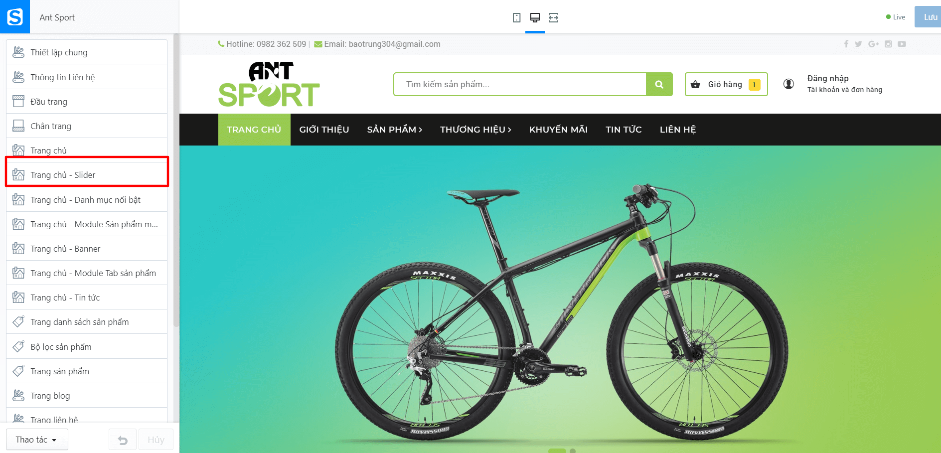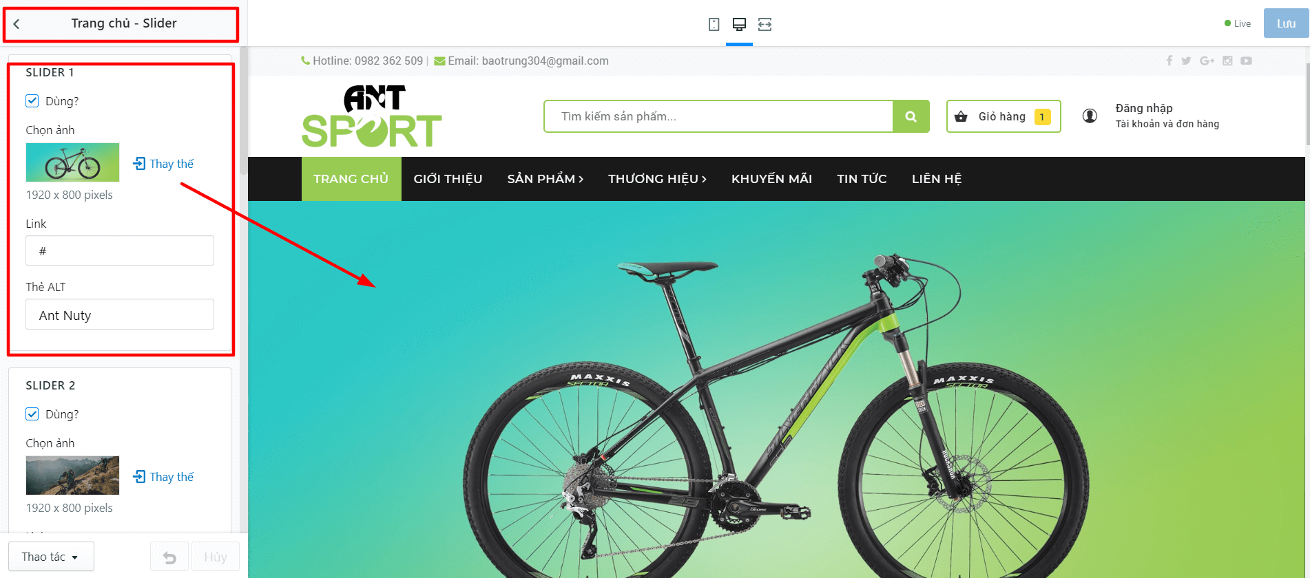 Đầu tiên bạn tìm đến Trang chủ - Slider: