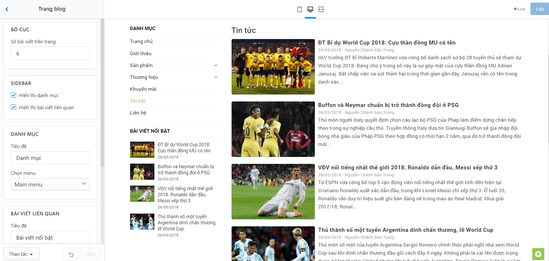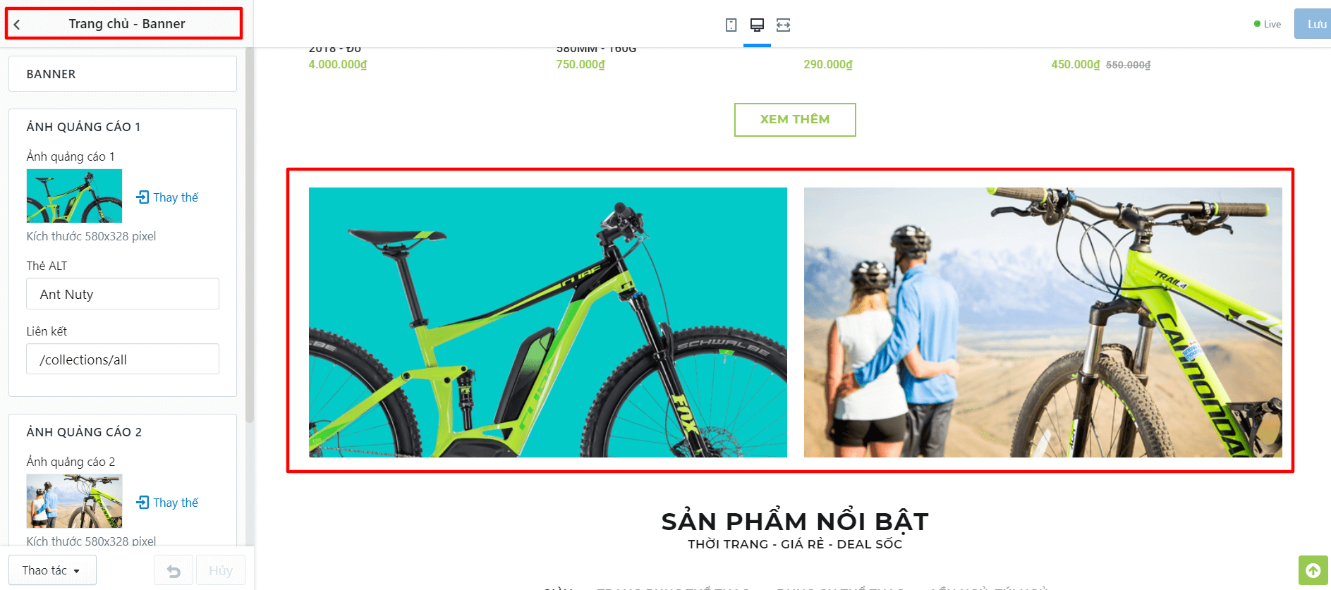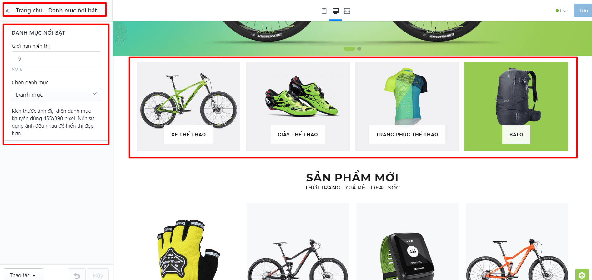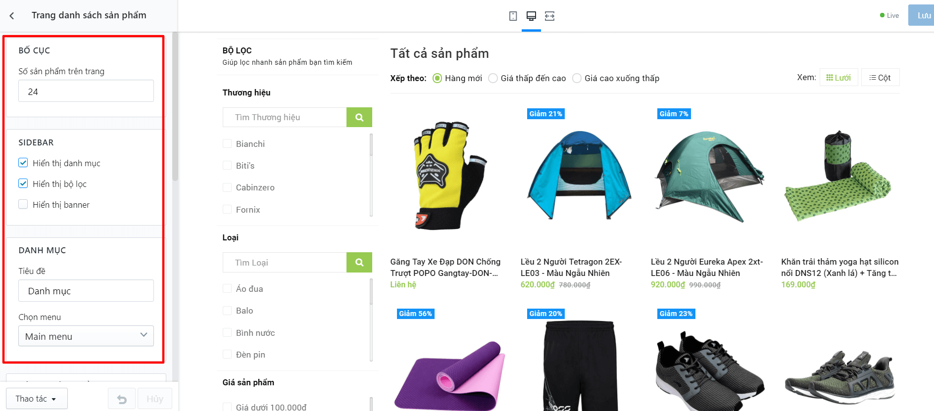 Bạn cần tìm đến thiết lập TRANG DANH SÁCH SẢN PHẨM