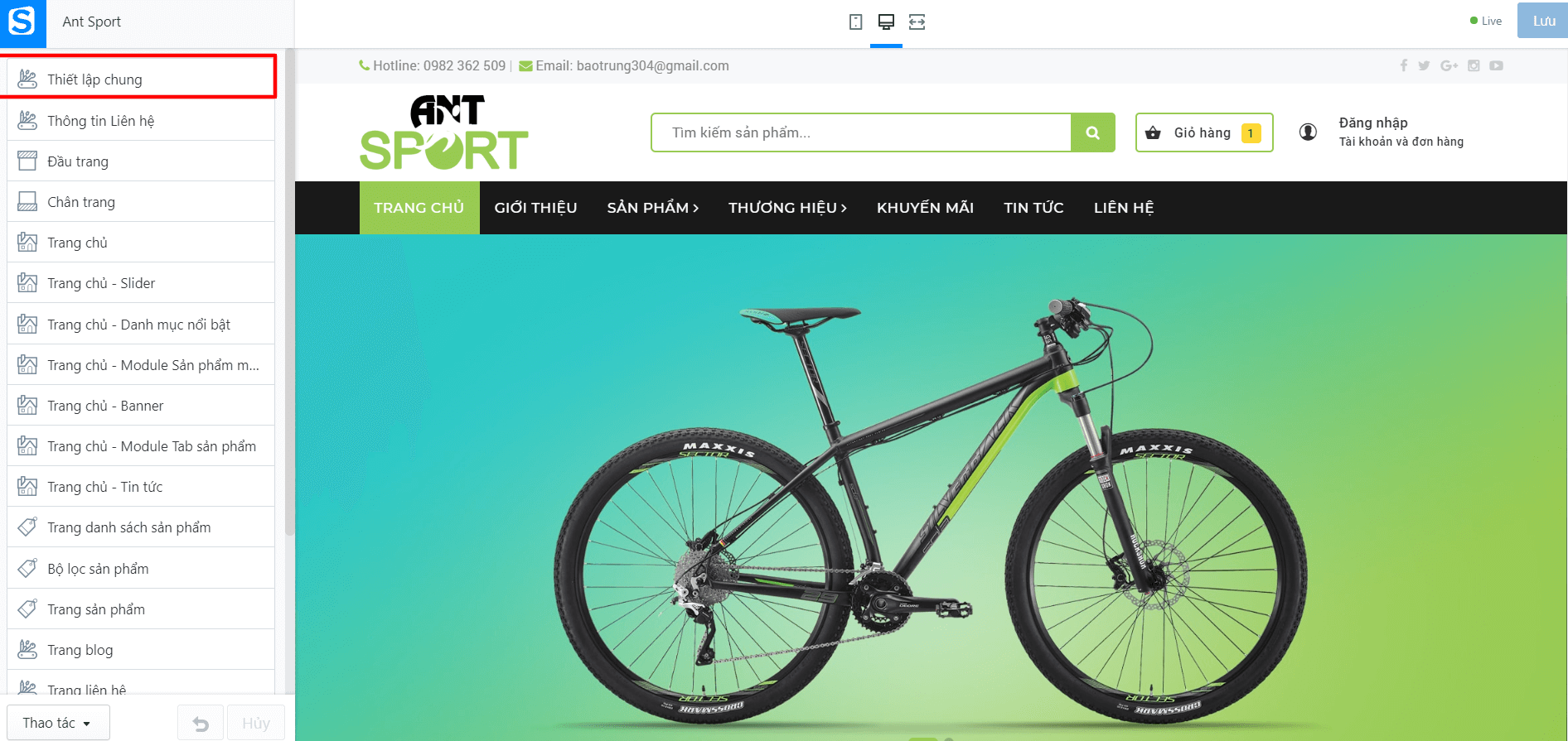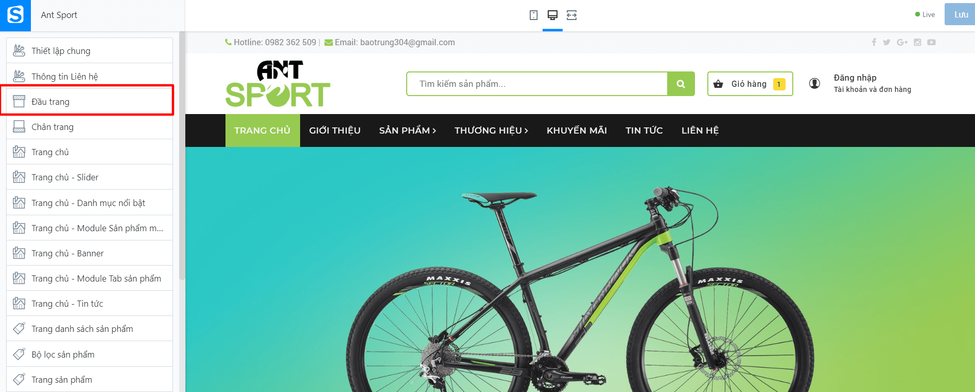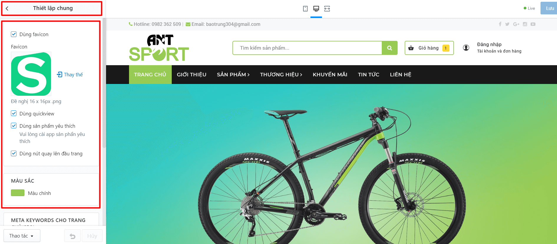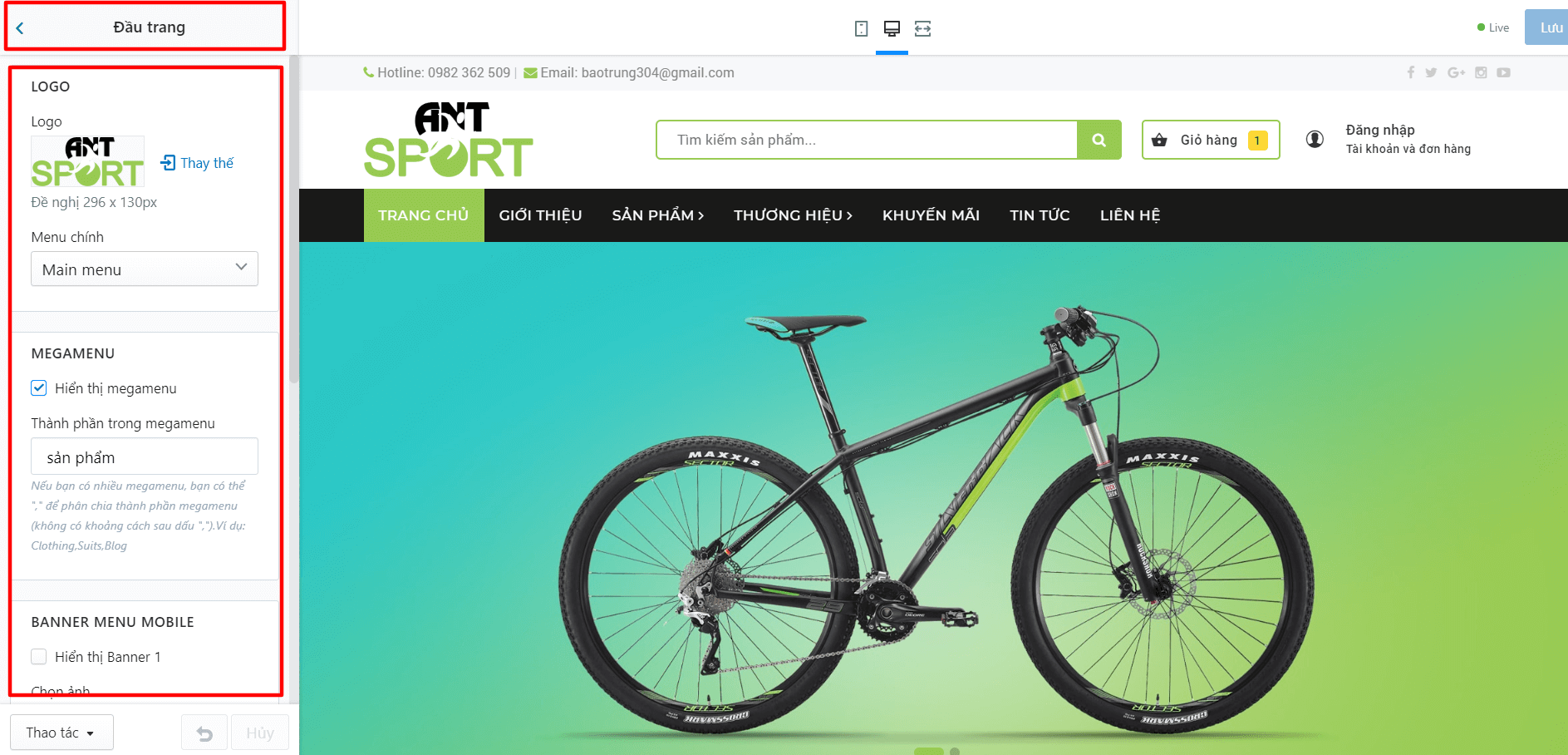 Tại đây cho phép bạn thay đổi tất cả các logo, Menu, Danh mục sản phẩm: