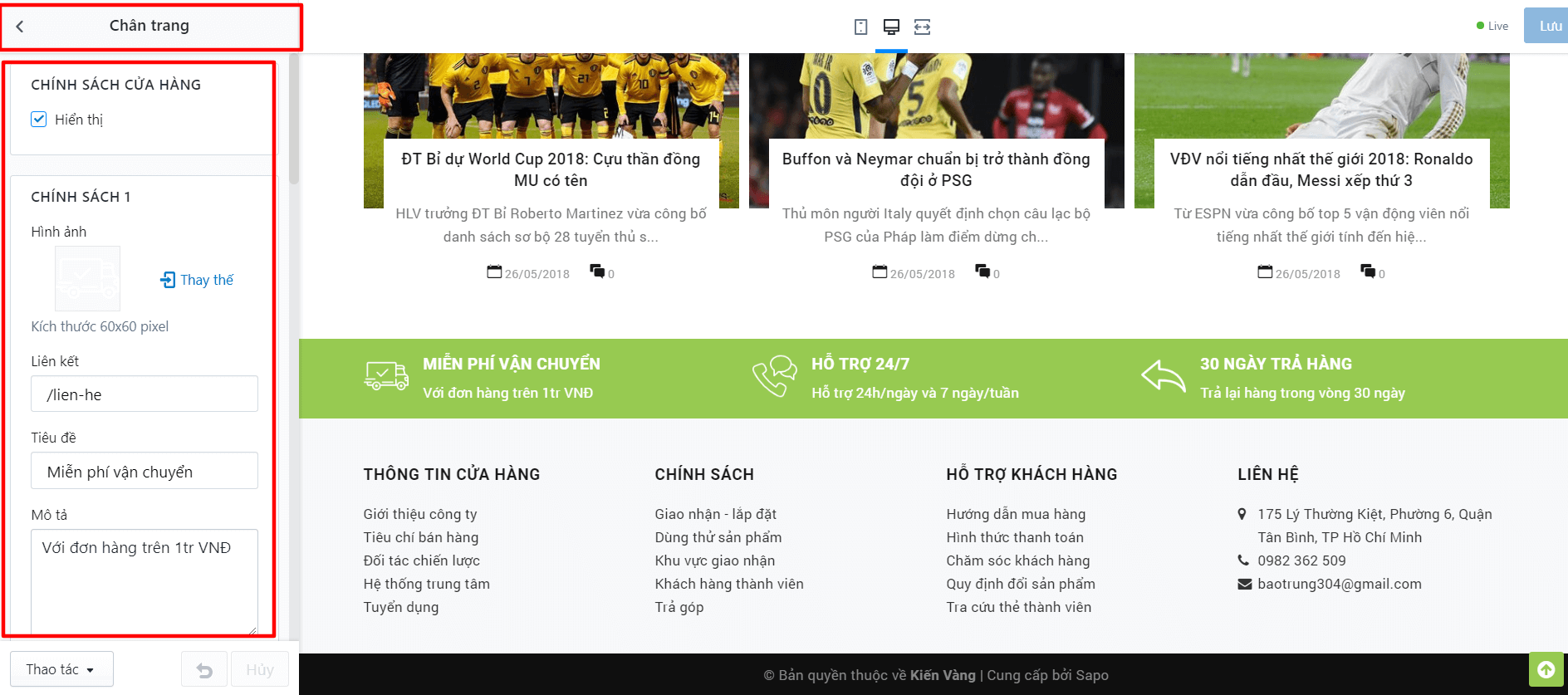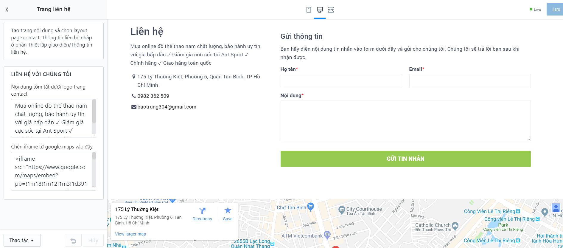Tại đây bạn có thể thay đổi Bản đồ cũng như các thông tin liên hệ: