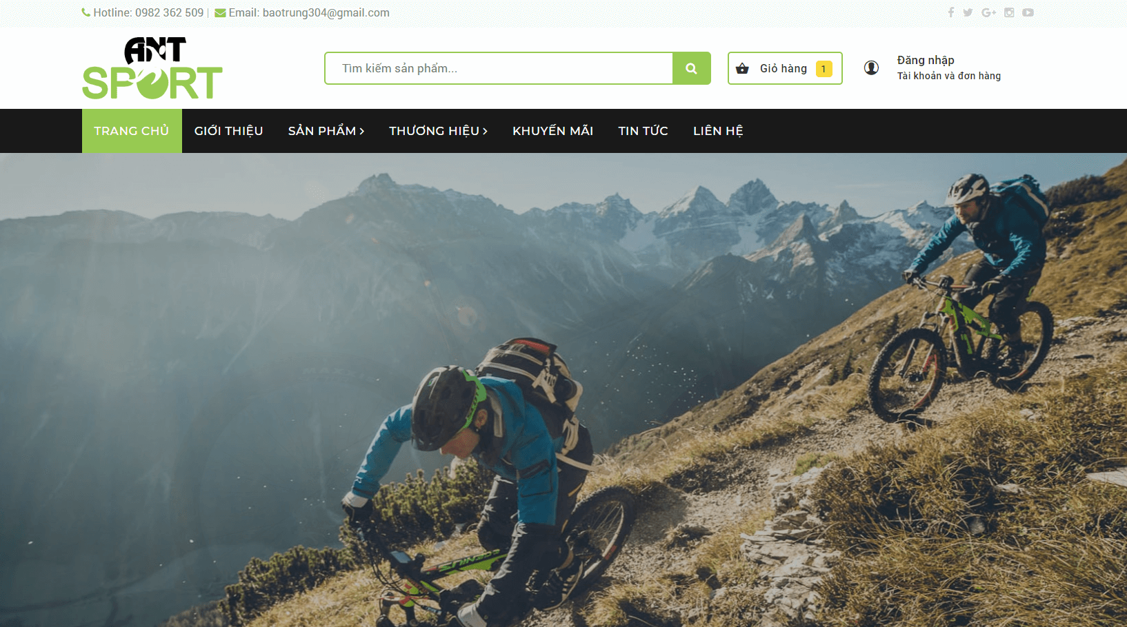 Giao diện website Ant Sport được thiết kế cho cửa hàng kinh doanh thể thao, đồ gia dụng, thiết bị gia đình, đồ công nghệ,......